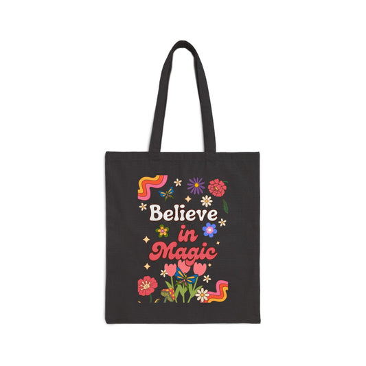 Retro Style Floral Tote Bag with Inspirational Phrase