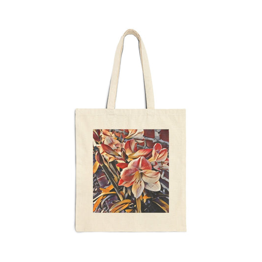 Chic Floral Carryall Tote - Retro Amaryllis Stonewall Sustainable Cotton Canvas