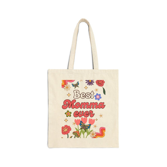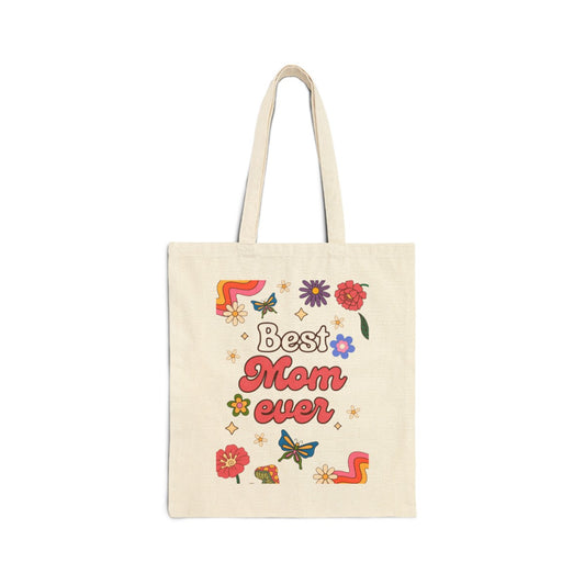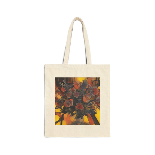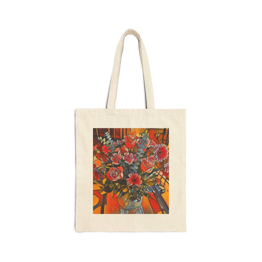 Vintage Floral Tote Bag | Retro Roses in Mason Jar Design | Organic Cotton Canvas