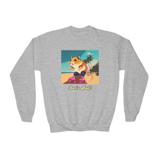 Cozy Youth Crewneck Sweatshirt Featuring Roller Skating Hammy