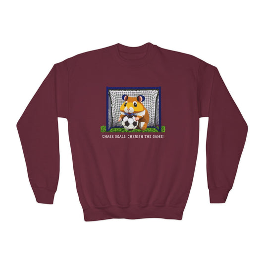 Cozy Youth Crewneck Sweatshirt Featuring Soccer Hammy
