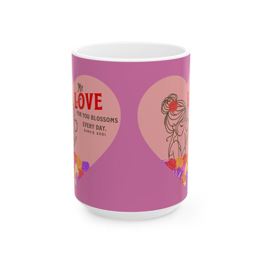Blossoming Love Collection Ceramic Mug in Pink, (11oz, 15oz)
