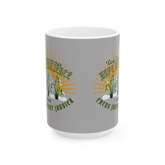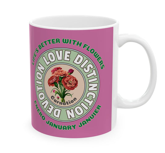 January Inspired Carnation Ceramic Mug, (11oz, 15oz)