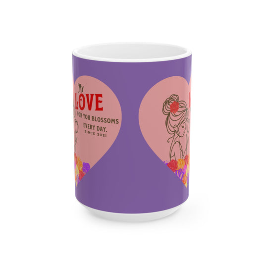 Blossoming Love Collection Ceramic Mug in Purple, (11oz, 15oz)