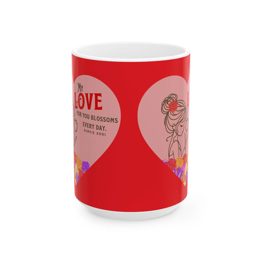 Blossoming Love Collection Ceramic Mug in Red, (11oz, 15oz)