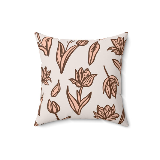 Chic Square Pillow Featuring Fringed Parrot Tulip Pattern