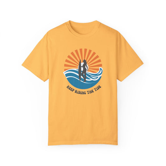 Stylish Surfer Themed T-shirt Featuring Riding Girl with Catchy Phrase