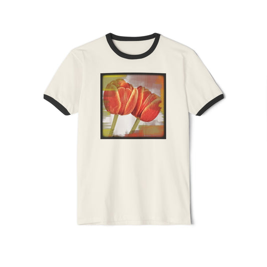 Vintage Style Comfy Cream T-Shirt with Orange Tulips
