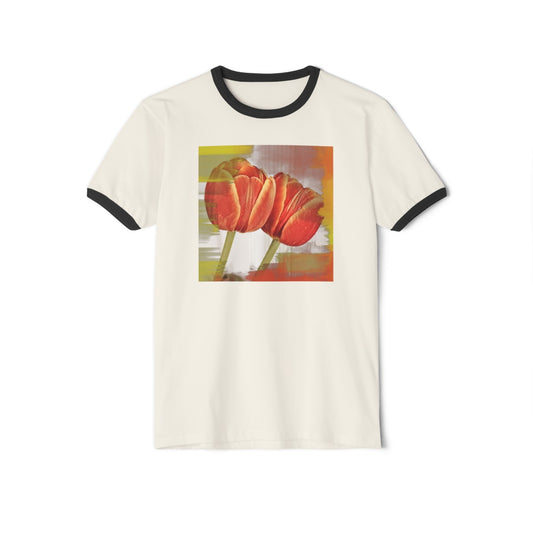 Vintage Style Comfy White T-Shirt with Orange Tulips