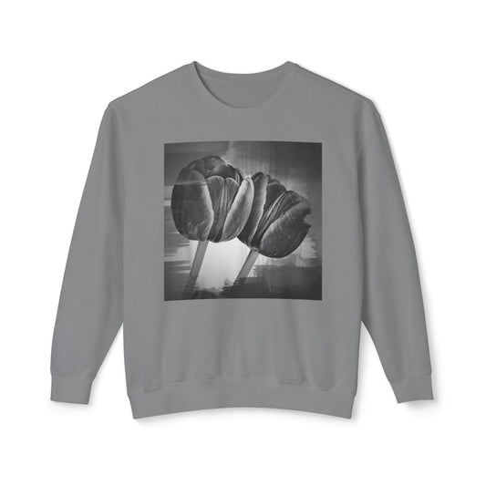 Comfy Oversized Vintage Style Grey Sweatshirt with Monochrome Tulips