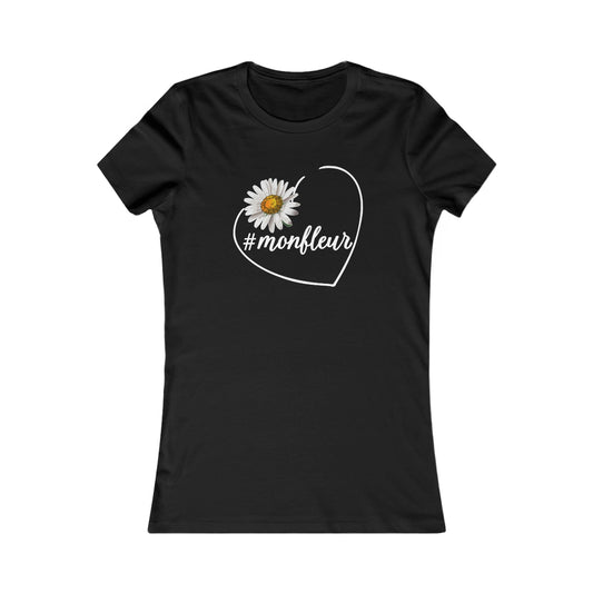 Cute Black Tee for Women with Daisy and French Hashtag Design