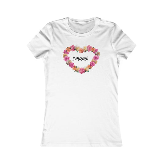 Cute White Tee for Women with Hashtag Mami Heart Rosettes Design
