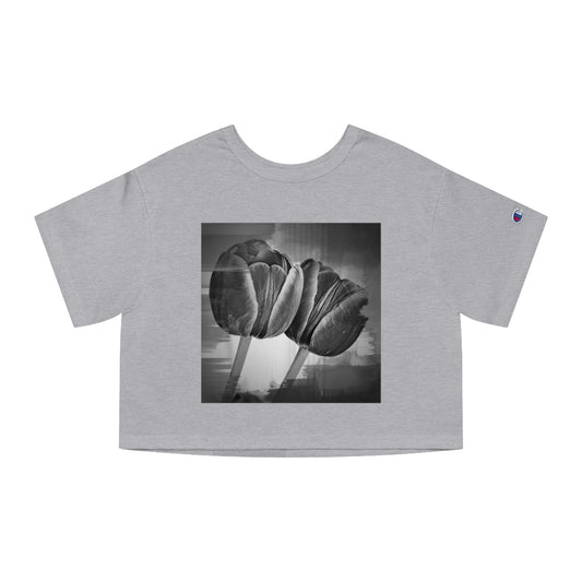 Champion Branded Vintage Style Grey Cropped Top with Monochrome Tulips