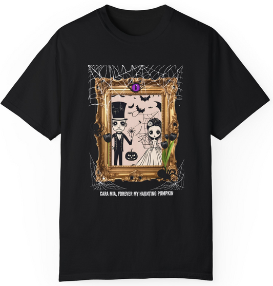 Vintage Inspired Halloween T-Shirt Featuring Frankenstein and His Bride